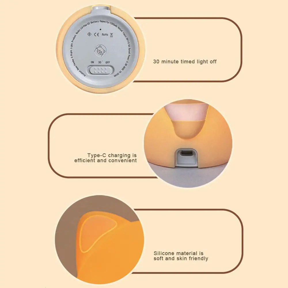 1.Ensure Peaceful Sleep: This adorable raccoon-shaped night light boasts a soft, washable silicone build that keeps kids safe and entertained without any hard edges
